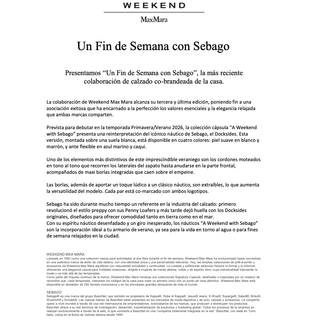 SEBAGO x Weekend Max Mara: Temporada III